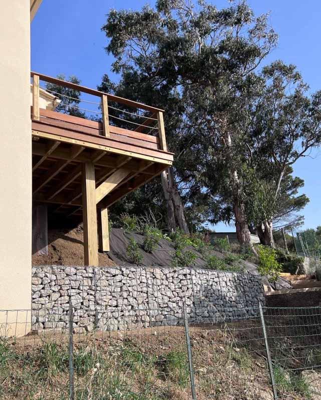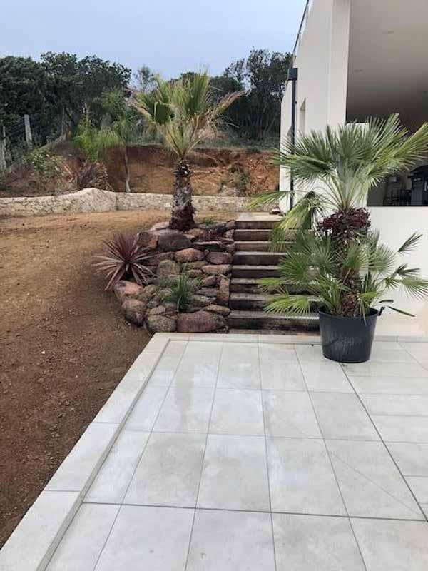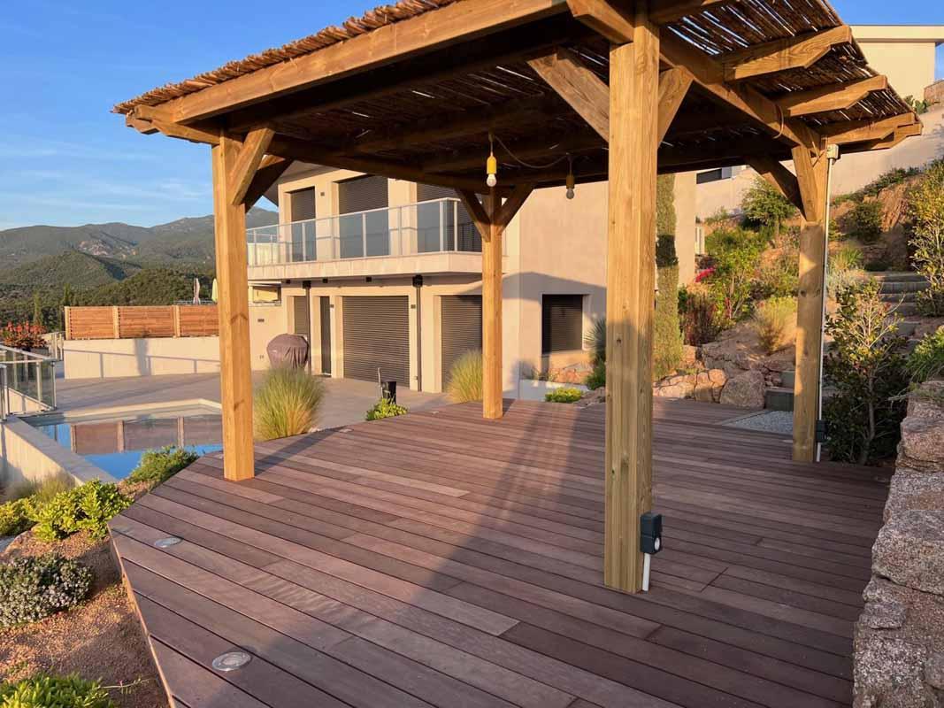 Polyvalente, l'entreprise L'Ortu Corsu vous propose la réalisation de votre terasse en bois - pierres de toutes origines - béton reconstitué ou dalles sur plots.