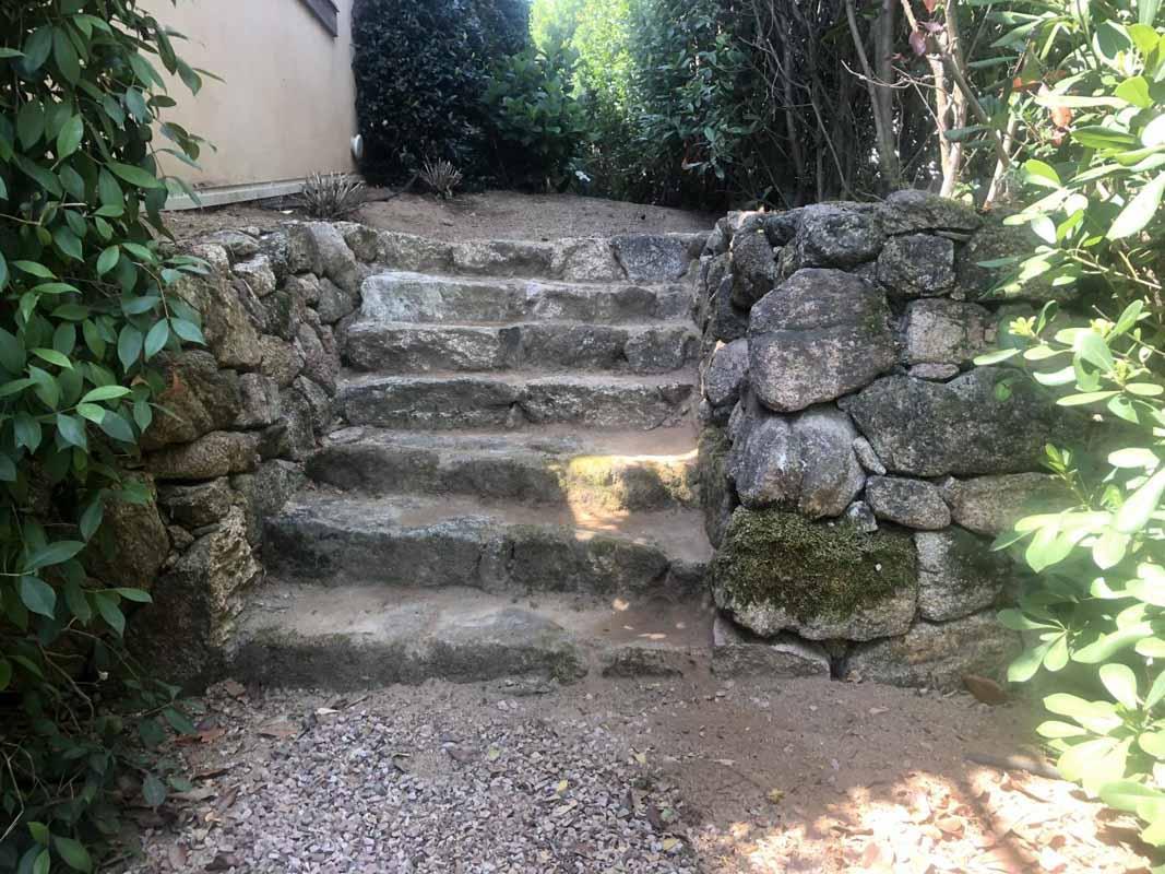 Nous pouvons aussi prévoir l'élévation de muret, piliers de portails avec une finition enduit - pose d'un parement pierres ; réalisation de murets en pierres sèches ou enrochement. Mais également la création d'escaliers paysagers, de circulations décoratives et enrobées.